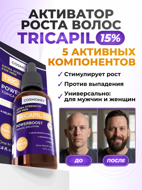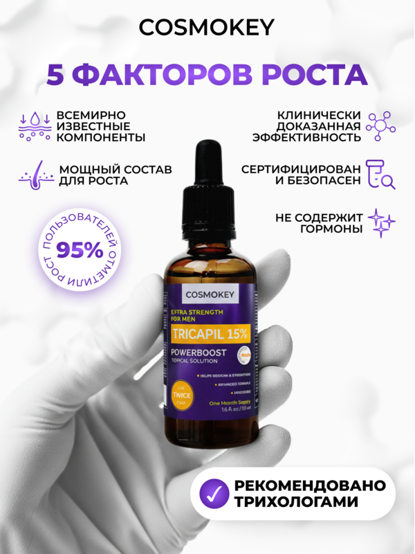 Космокей Трикапил 15% — это лосьон нового поколения для стимуляции роста и укрепления волос.