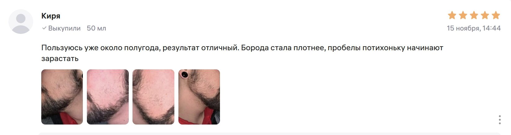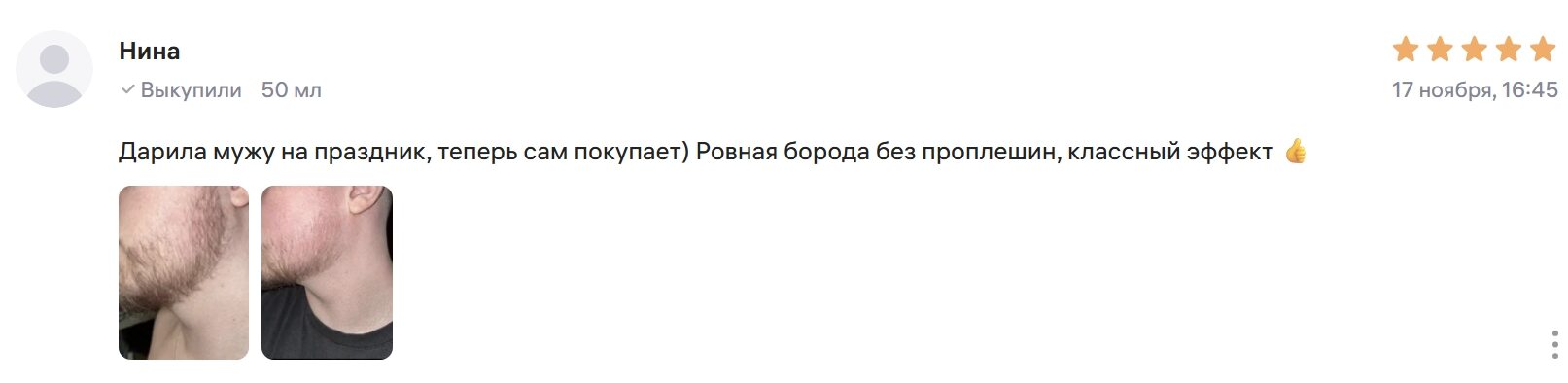 Оценка результата: пользователи описывают, как меняется густота, толщина и заполненность контура бороды после использования.