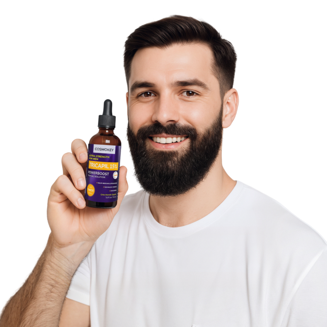 Главное преимущество Tricapil — комплексное и физиологичное воздействие. В отличие от миноксидила, он не вызывает синдрома отмены, так как работает не только на кровоток, но и на восстановление структуры корня. Kopexil размягчает ткани вокруг фолликула, облегчая выход волоса, а пептиды и кислородный комплекс улучшают состояние кожи, уменьшают сухость и раздражение. Tricapil мягко подходит для бороды, не вызывая агрессивного сосудорасширения, и одновременно воздействует на несколько механизмов выпадения волос.