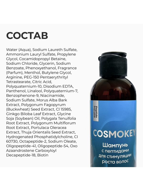 Cosmokey / Космокей Шампунь с пептидами для стимуляции роста волос, 150 мл